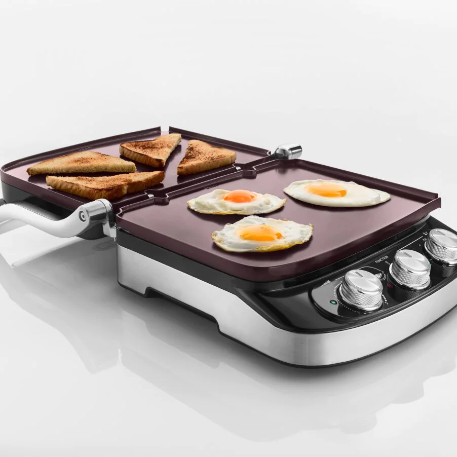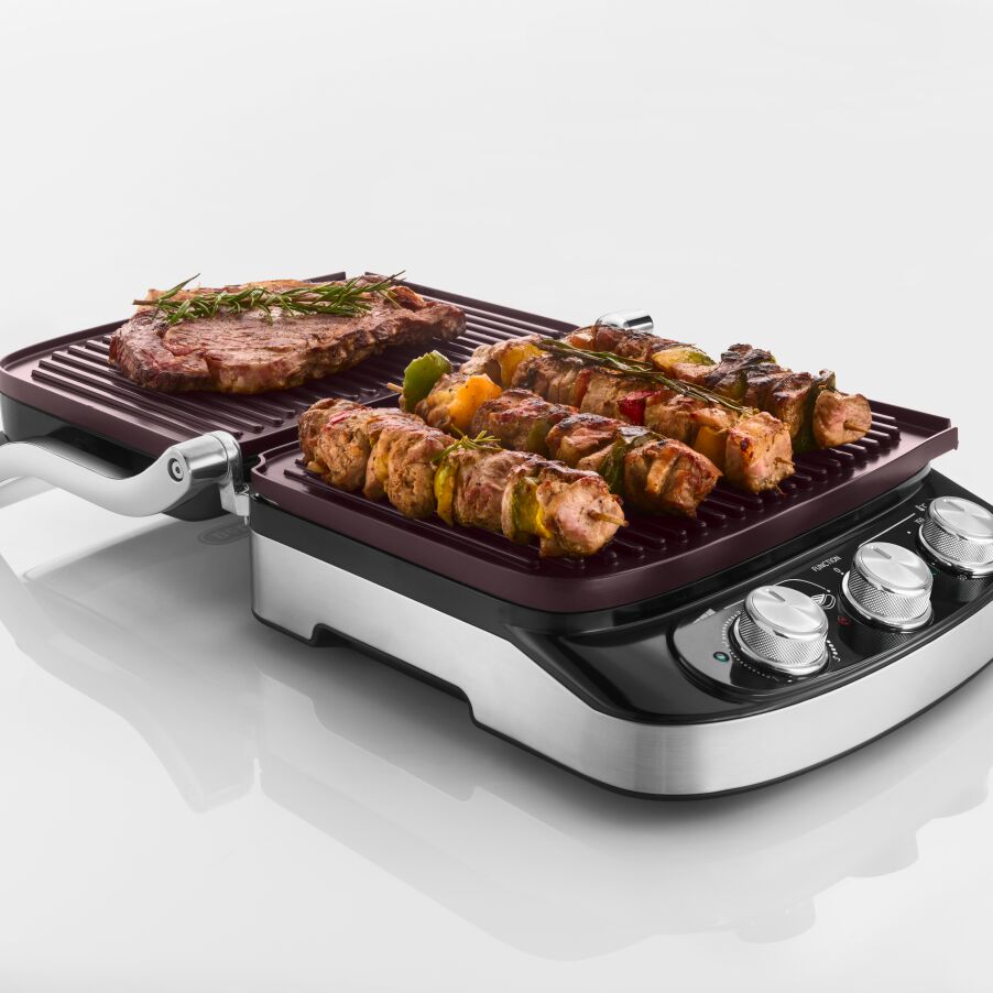 Grill meats, fish, vegetables, cheeses, sandwiches and other delicious meals Excellent cooking results with electronic temperature control Easy cleaning thanks to removable and dishwasher-safe plates 2 sets of plates: grilling and cooking